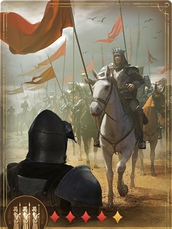 我军兵种为弓兵时生效,提高我军全体人物的武力(不可被清除)。我军全体人物的一般攻击有概率触发武力伤害(武力加成,星级可提高伤害率),并降低敌军主将守备(星级可提高幅度),效果不断一定时间。