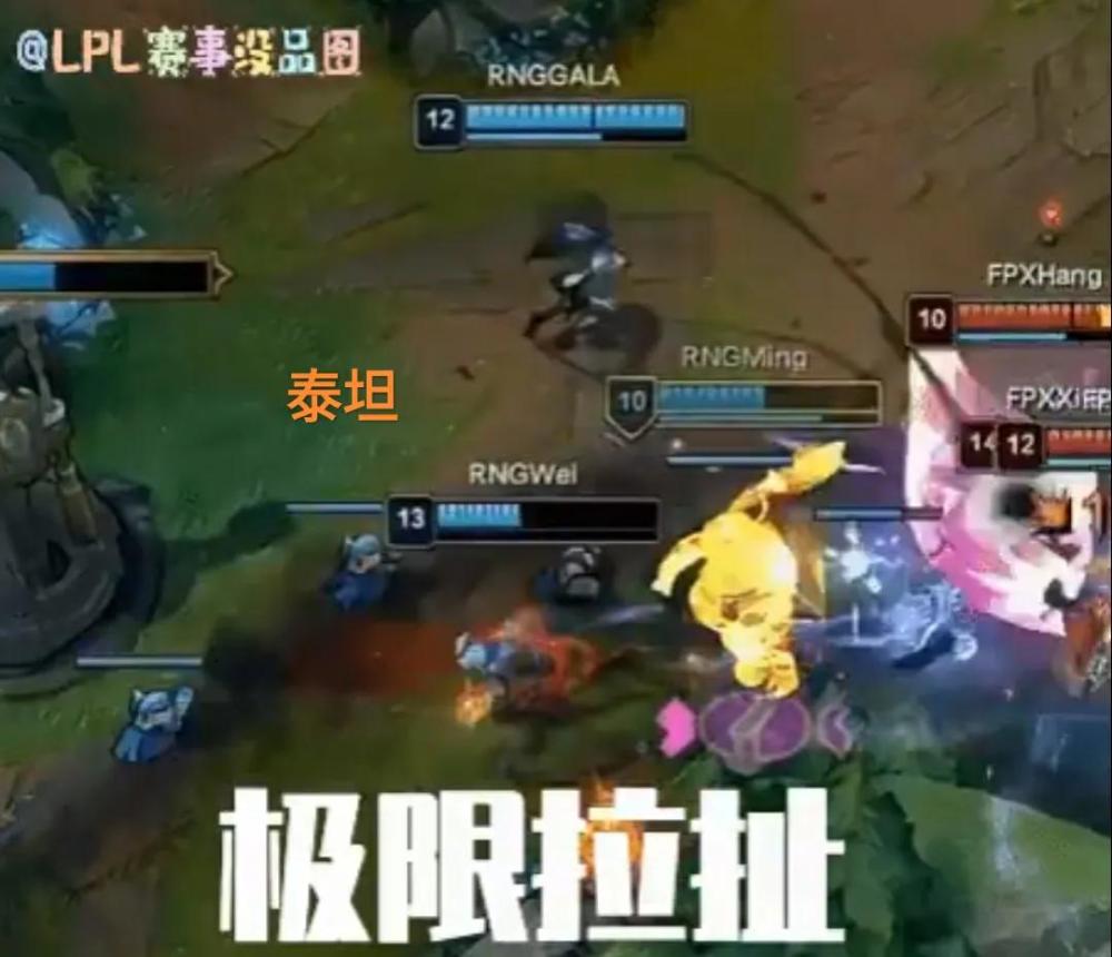 在中路非常关键的那一波团战中,小明的泰坦打出了级操作。先是盲僧一个摸眼踢,将wei给打了回去,随后wei也是非常的冷静闪现,加大招过墙,然后向下的小走位躲开了减速和多个伤害技能,Fp x战队众人看这一波操作是机会,所以一拥而上,小明的泰坦也是顶在了前面,保护wei撤退,在金身结束之后,他先是一个大招,然后向后的小走位回身q技能打出控制,最后闪现一丝血极限逃离战场,这波操作将泰坦的控制全部都打满了。
