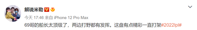 当然要说这场BO3给人印象最为深刻的操作,还是第一局369船长豪取五杀的画面。在第一波比赛结束后,LPL众解说、主持也是第一时间不约而同发博惊叹于369船长的操作。米勒发文盛赞道:“69哥的船长太顶级了”。而管泽元也是在赛后发博,“鬼鬼,369的船长!”