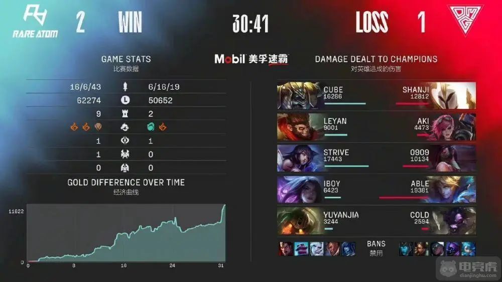 RA对OMG,在双方都拿一分的情况下,RA选出了灵性狗头,直接叠到800层Q成为制胜关键,最后RA拿到夏季赛首胜。