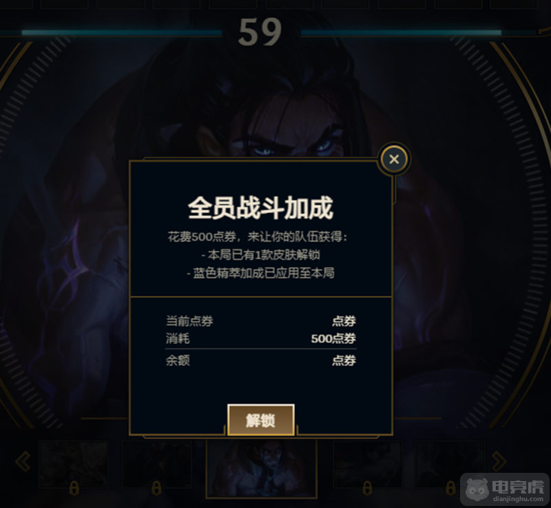 大乱斗全员战斗加成在昨日开启限时测试,在极地大乱斗选人界面消耗500点券即可为本局所有队员购买全员战斗加成,每人可以随机解锁1款当前英雄的皮肤以供本局使用。
