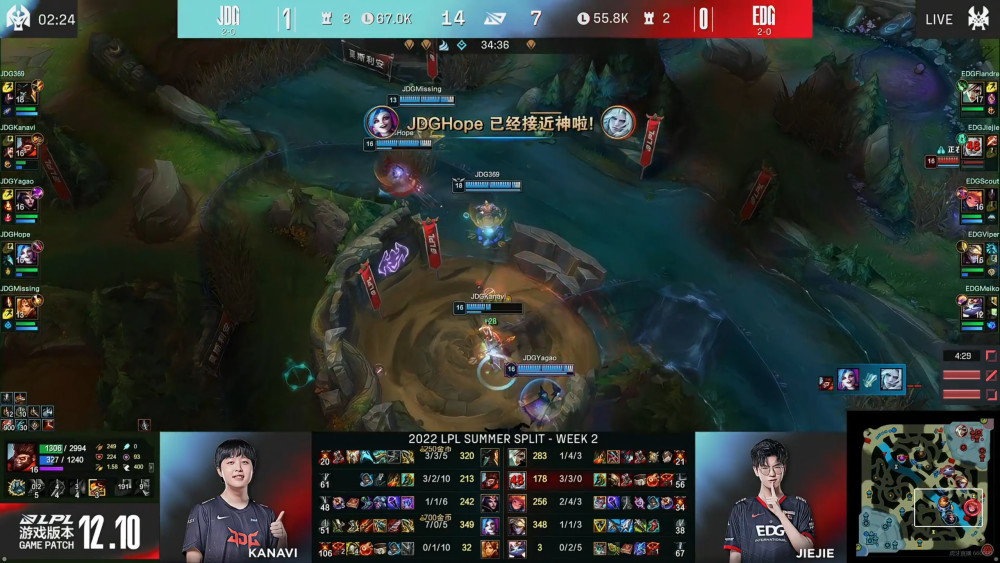 LPL夏季常规赛,EDG和JDG的这场比赛备受关注,一方面是因为这两支队伍都是LPL的强队,另外一方面是这两支队伍目前都手握2-0的战绩,这也意味着今天必然有一支队伍会被打破不败金身。