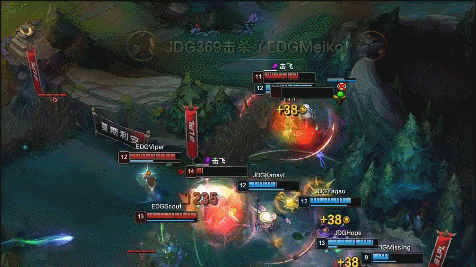 关键的一波第三条龙团中,EDG率先落位,JDG战队是先锋拉扯,EDG拿下小龙,但被JDG拉扯直接拆掉高地防御塔。