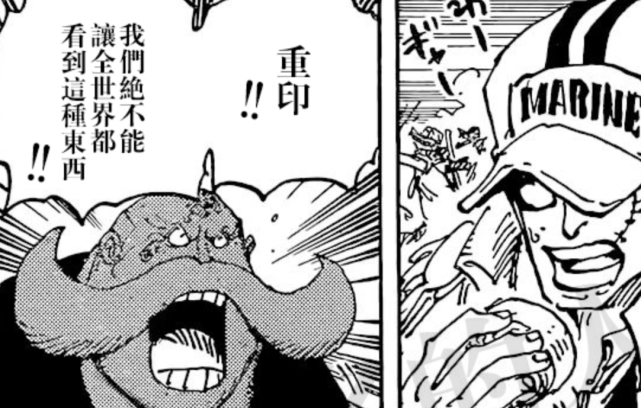 当报纸王摩根斯将路飞的尼卡头像制作成悬赏令散布在世界各地,让远在圣地玛丽乔亚的五老星十分愤怒,却碍于尾田的限制,无法离开玛丽乔亚,只能大声吼叫无济于事。另一处分镜是关于CP0与bigmom海贼团,这样来看,一共有3个信息点。