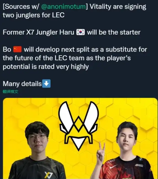 同时官方还配上了一组文字:“就缺中国的天才Bo我们就… 请小蜜蜂们来填写”。称Bo为天才少年确实不为过,但是对于很多LPL的粉丝来讲,对Bo大多数都是负面印象,毕竟假赛真的太可恶了。但是对于LEC赛区的人来讲,可能他们觉得这件事情不是Bo的主观,所以觉得无所谓,才会如此期待Bo吧。