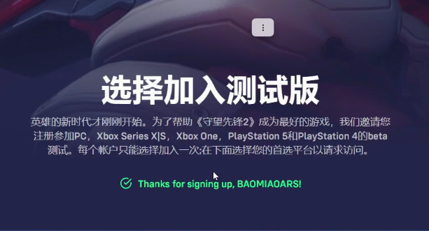 守望先锋2第二次测试资格申请流程: