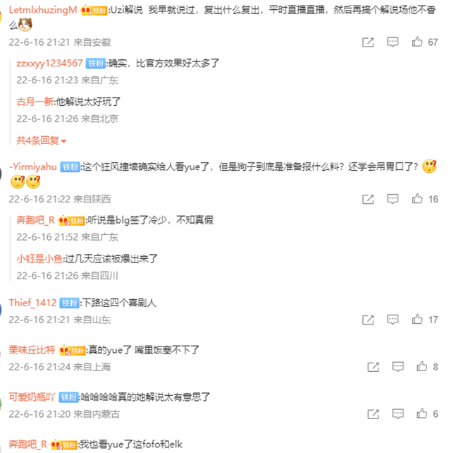 乌兹嘲讽两队比赛:这是比赛吗,这是LPL的比赛吗?这是两个顶尖强队的操作吗!给我看yue了兄弟们,噎住了,只能说两边的选手都有一种神奇力量。当然,乌兹还是会安抚BLG的,比赛结束后他希望老东家继续磨合,走得远一点。
