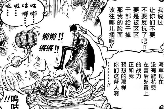 在漫画中绿牛对着路飞的悬赏单自言自语,说明要拿下他的首级。这一切都是为了让赤犬能夸他一番,就像考试考得好成绩的孩子,等待父母表扬一般,只不过这里的绿牛是将赤犬视为偶像。