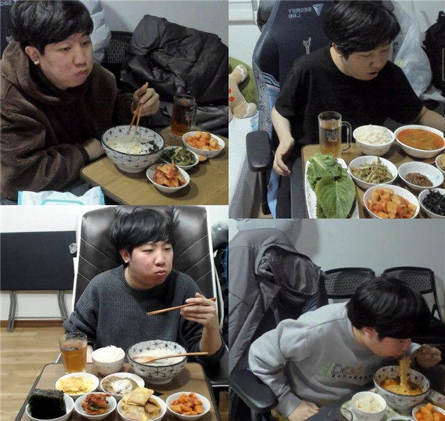 可以看到,khan吃的最多的时候,面前摆着十道菜,既有一些汤面,还有饼和肉菜,最重要的是khan面前放着一碗大米饭,这主食实在不少,khan真的有点能吃。