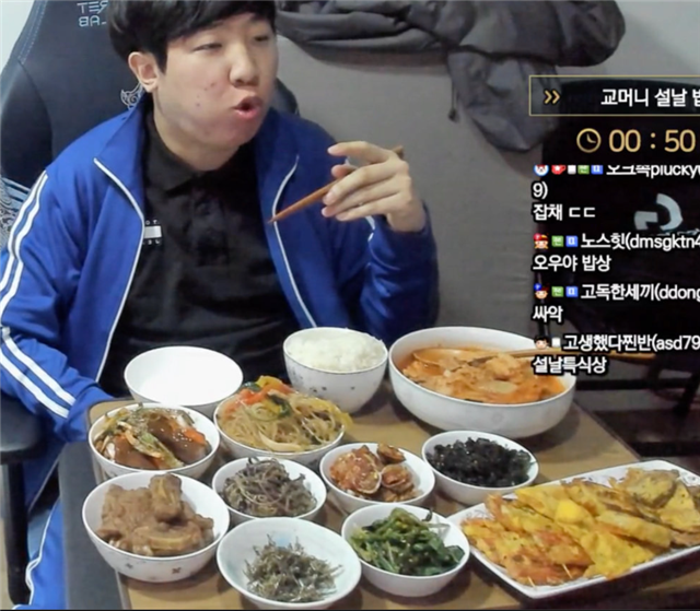 除了rank时的所作所为,khan其他直播还是很有节目效果的。大家发现,khan之所以越来越胖,跟他的饭量有很大关系。吃饭的时候,khan摆出很丰盛的食物,可以看到他用的碗有点大,甚至超过很多盘子的大小。饭碗不算什么,khan吃的菜才叫多。三样算是少的,很多时候他一顿吃七道甚至是八道菜。