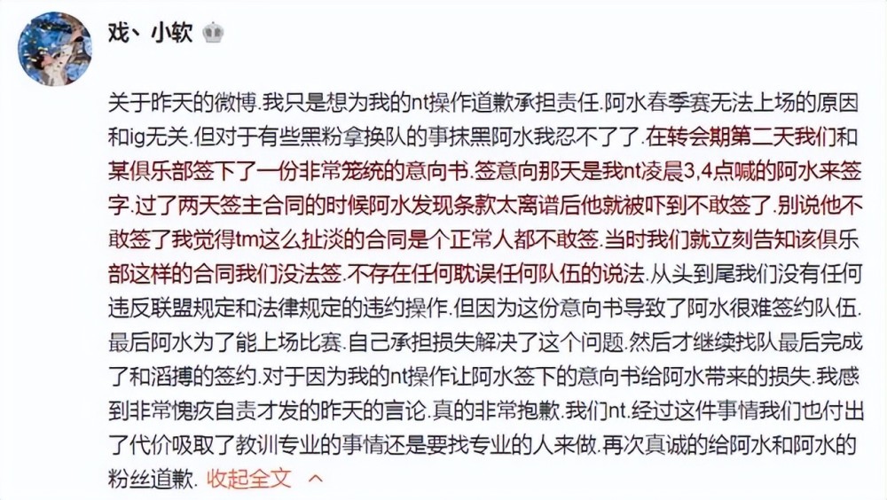 而除了JackeyLove之外,曾效力于RNG的UZI、MLXG,也被爆出存在合同纠纷,UZI的话比较简单,退役之后想要复出,但和RNG有经济合同,导致其只能在RNG复出(MLXG、Letme都谈过这个问题),UZI女友一度发文指责RNG的冷血无情,最终为了摆脱RNG,乌兹加入了BLG,双方各取所需,在S12夏季赛,UZI也是换了直播平台,成功脱身。