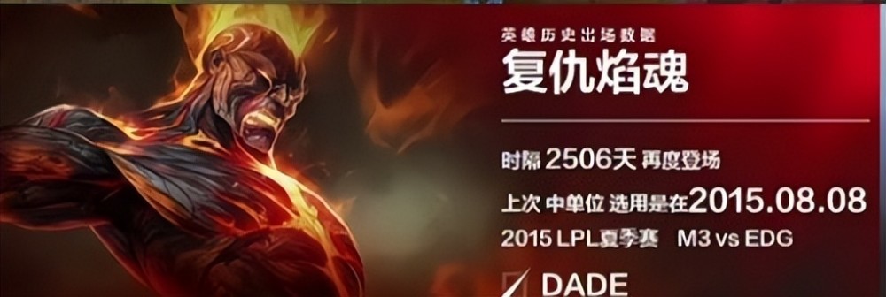 在TES与iG的第二场比赛中,TES中单Knight选择了火男来对抗Yuekai的乌鸦。这是火男时隔2506天再度重回LPL中路,上一次火男在中路登场还要追溯到2015年LPL夏季赛M3对阵EDG的比赛中,那时火男的使用者不是别人正是赫赫有名的春之大帝Dade。