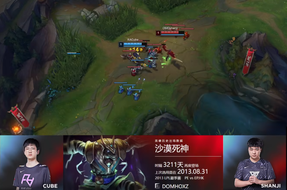不过近期LPL的赛场上面,就出现了破解之法。既然没有办法限制天使的发育,那就找一个能跟天使对着发育,且后期能力也很强的英雄,RA在跟OMG的比赛当中,RA的上单cube,拿出了一个英雄,让观众们都非常的震惊!这个英雄就是沙漠死神-狗头。
