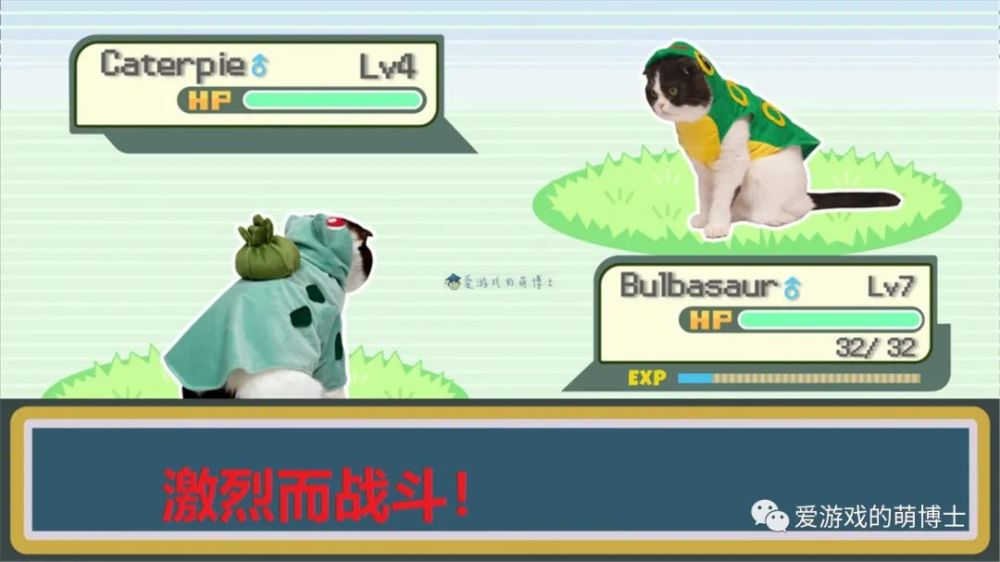在游戏场景中冒险的时候,我们遇到了敌人“绿毛虫”,双方进行了激烈的战斗。有趣的是:战斗过程中,我们的“妙蛙种子”由于饥饿,还特意进食了一番。上述的这些剧情里出现的角色全部由创作者家里养的两只猫咪饰演,挺有意思的!另外,游戏里的场景都是“GoroandLuca”用纸壳搭建的,材料虽然简陋,但是最终的成果还是挺精致的,这位大神真是有才呀。