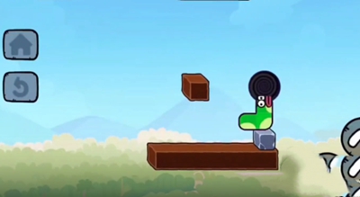 1、先从上面的木块爬下来,然后再爬到下面木板左边。