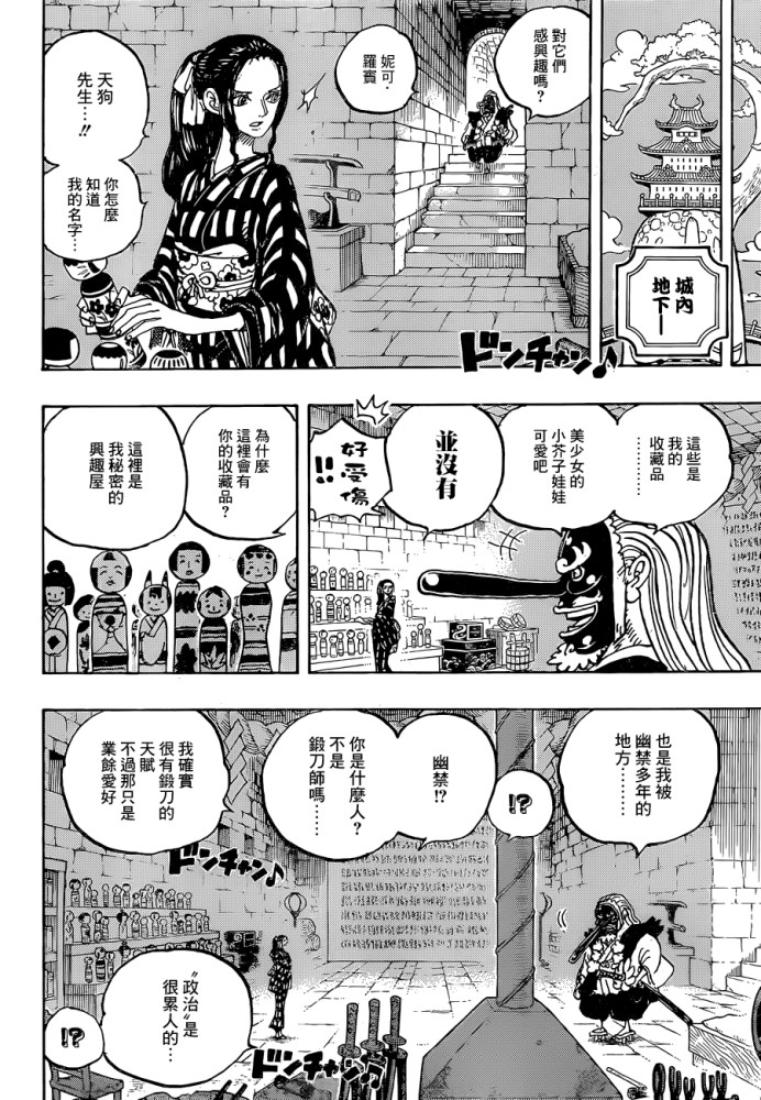 罗宾来到和之国花之都的地下室遇到天狗山飞彻。