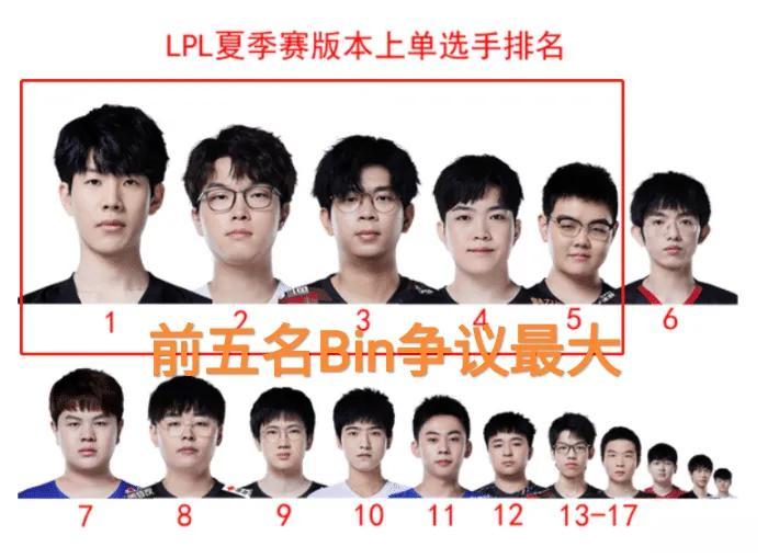 排在第二的是Bin,刚刚拿到了msi的冠军,就加入到了blg战队,但是在整个队伍的配合中,并没有那么稳定,甚至成绩还出现了大幅度的下滑,连lpl赛区的一些不知名上单都打不过了。所以大家对于它排在第二的争议是非常大的,认为现在的bin连lpl赛区的前五都进不去。可能选手真的是和队伍有着一些契合的,在适合自己的队伍中,总是能够打出一些顶级的操作,甚至帮助队伍拿下一些冠军。但是来到不合适的队伍后,成绩也会大幅度下滑。