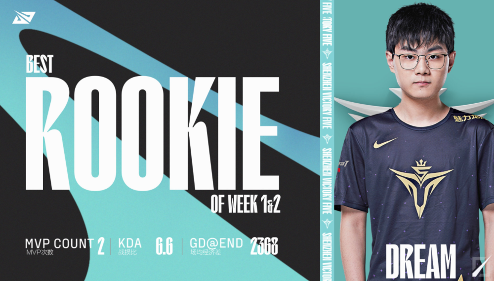 另外最佳辅助给了ON,还是引发了不小的争议,因为ON在前两周的失误有不少,相比之下给刘青松明显更合理一些。即便BLG前两周战绩不佳,但刘青松的发挥还是获得了不少水友的肯定,甚至有水友调侃刘青松要尽快去“看看腿了,因为腿快要被抱断了”。而最佳新秀给了V5小将Dream,这位撞脸许秀的选手被抬上来救场,但发挥很抢眼,天赋肉眼可见,很可能会成为ROOKIE的接班人。