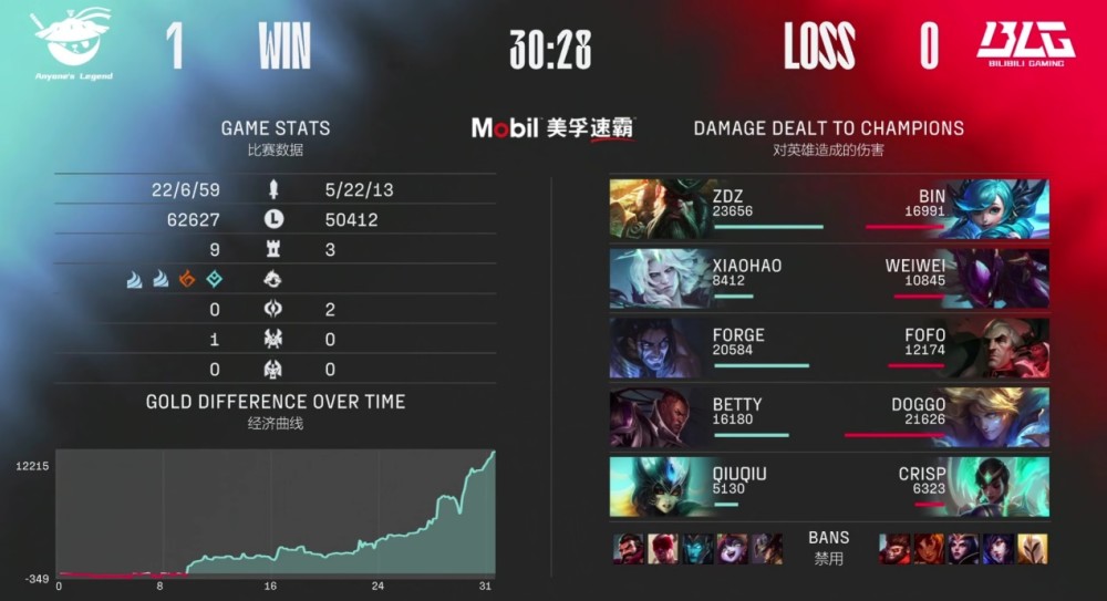 值得一提的是,Bin在第一局是拿到了自己最擅长的格温,但并没有打出很好的效果,反而是被对面的上单Zdz以船长打出了教学局。看过MSI的观众们应该知道,Bin的船长打格温效果很差,后面的比赛基本不会用船长打格温了,但这场Zdz就打得很好。