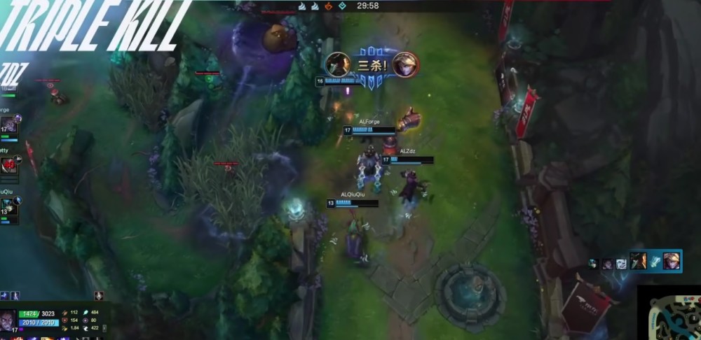 发育到后期的时候,Zdz是以17级的船长打出了LPL开赛之后的最佳操作,以一己之力打退对面,并且配合队友拿下了三杀。