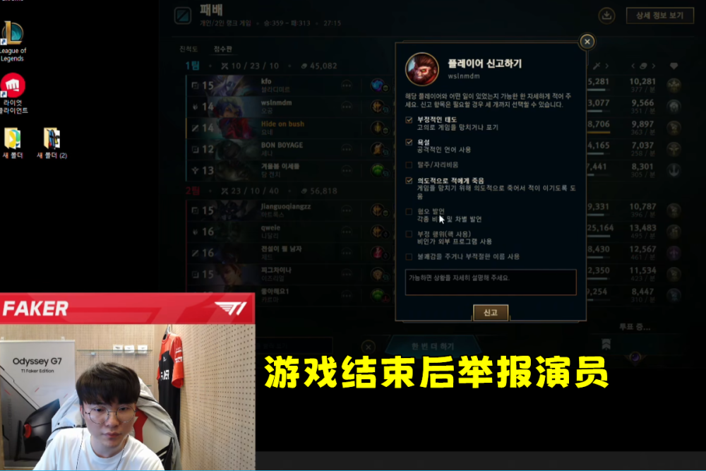 也就是因为这一波,李哥当时的直播间节奏就起飞了。而后续猴哥也是直接发起了投降,令Faker很是不满,直接来了一句:为什么要这样呢,游戏内经常挑衅的人,他们的智力一般都很低,这猴哥应该不是职业选手吧,感觉应该不是韩国人。这席话一出,弹幕瞬间爆炸。特别是游戏结束之后,李哥还举报了一手猴哥,将其作为演员对待了起来。
