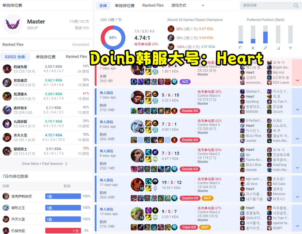 而Faker近期也是有些失态,在直播rank时疯狂吐槽队友,还举报了不少玩家,直接将自己再次推向了风口浪尖之上。说来也是巧,此时的LCK确实也有不少演员横行,以至于LCK官方表示将会严惩此类行为,大量的LPL玩家账号都遭到了封禁,就连注册在内的职业选手也未能幸免。举个很简单的例子,Doinb的韩服大号已经不是第一次出现在大众视野中了。