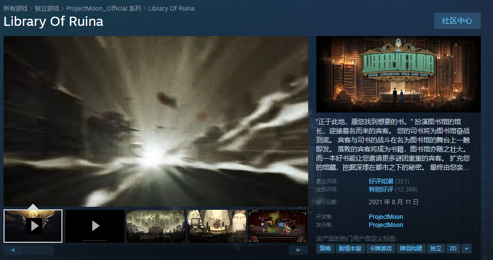 《废墟图书馆(Library Of Ruina)》,原价160元现史低80元。这是一款剧情向的图书馆卡牌战斗模拟游戏,不管是剧情还是配乐都非常出色,卡牌的玩法也很加分。