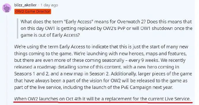 在最近的Reddit AMA(问答活动)中,《守望先锋:归来》总监亚伦·凯勒(Aaron Keller)透露,《守望先锋:归来》将在发布时完全取代原版《守望先锋》。