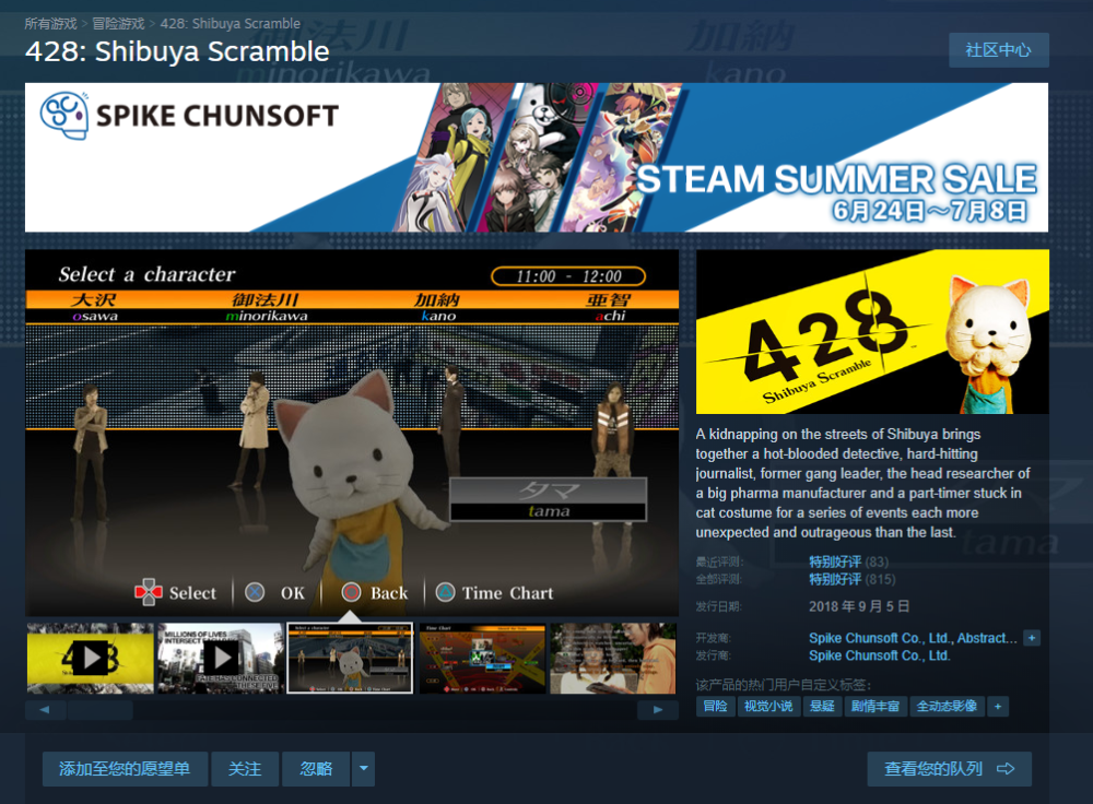 《428 被封锁的涩谷(428: Shibuya Scramble)》,原价138元现27.6元。一款真人影像的推理视觉小说,民间有中文补丁可以选择。互动部分与推理环节都做的非常优秀,悬疑爱好者不玩会觉得非常可惜的类型。