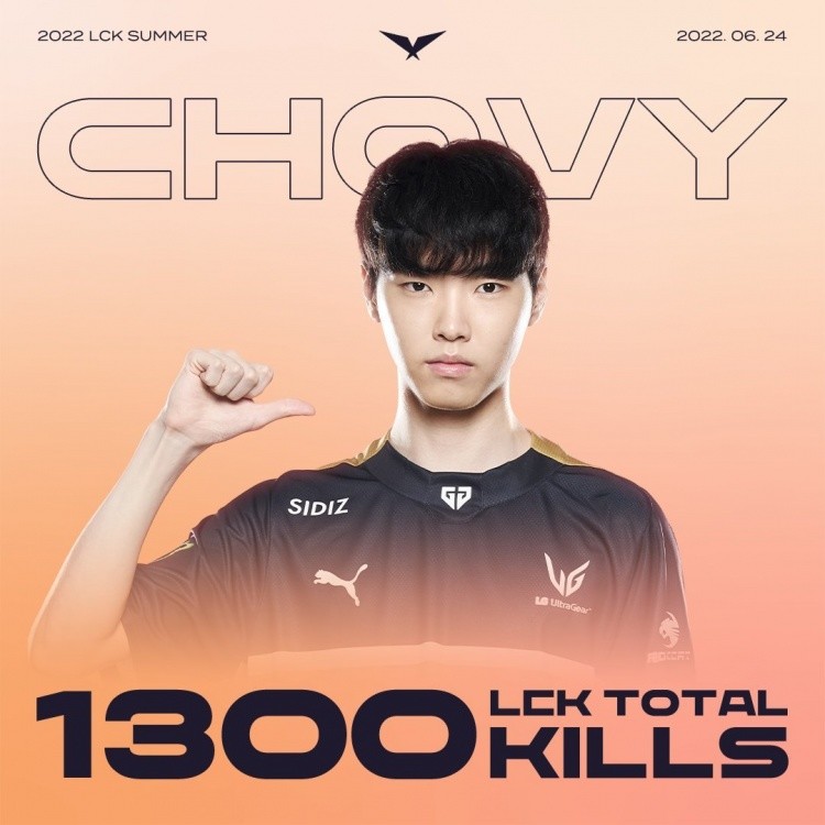 在今天GEN.G对阵BRO的第二局比赛中,GEN.G中单Chovy达成了LCK 1300击杀里程碑。