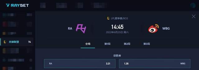 现在的这支WBG被很多观众评价为完全靠上野发挥的队伍,尤其是Sofm如果没能带起节奏WBG就陷入了非常被动的局面。不过毕竟从纸面实力上WBG要强于RA,这场比赛只要Sofm能够维持此前的神勇表现,这场比赛WBG很有机会赢下来避免连败的局面。根据赛前专业电竞预测平台给出的数据,WBG是以1.35占据绝对优势,跟大多数观众的看法一样,有着Sofm、The shy等明星选手组成的WBG更受看好。