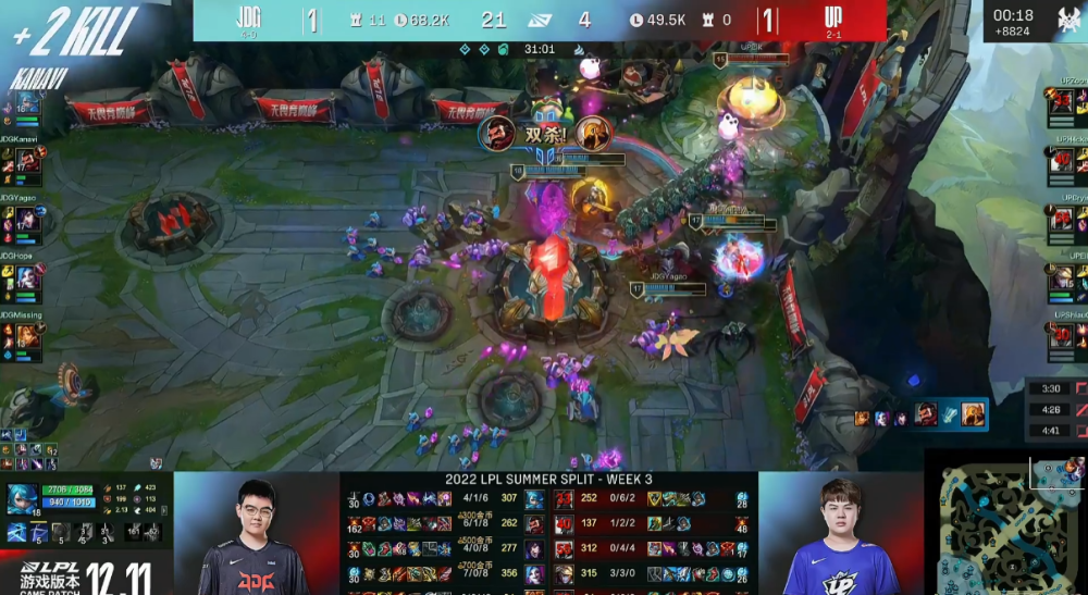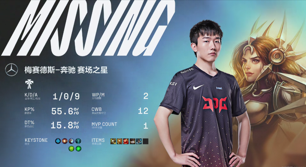 本赛季送走Zoom,Lvmao以及Loken离队之后,JDG签下了369和Hope以及Missing。春季赛的他们在季后赛被RNG和V5连续2个Bo5击败,最终只拿到了第四名。夏季赛目前已经击败了包含EDG,TES等多支强队在内的对手豪取5连胜。
