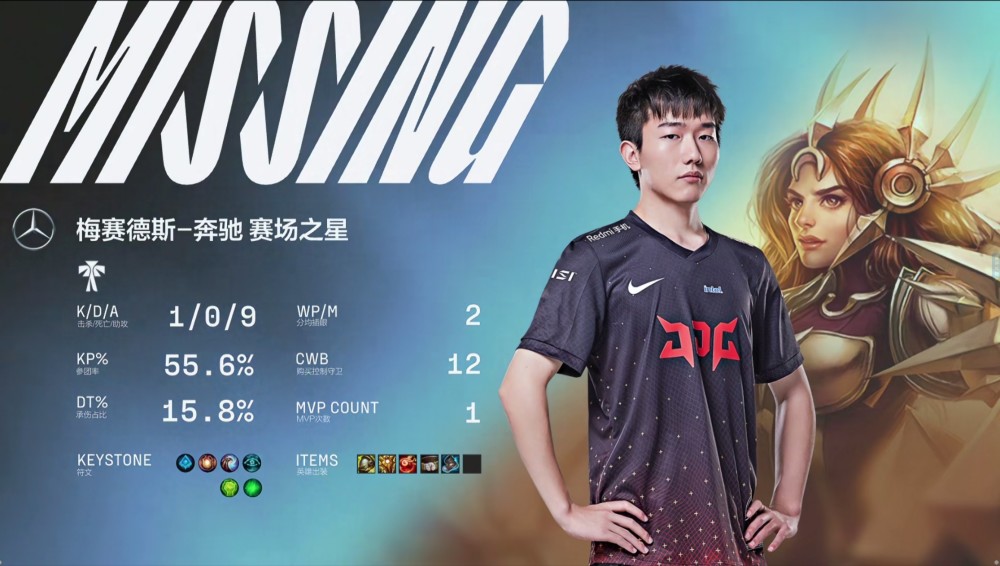 最终JDG是以Missing精彩的开团表演,成功拿下了第一局比赛的胜利,值得一提的是Missing是在面对老队友老搭档(Elk)的情况下打出了如此精彩的表现。