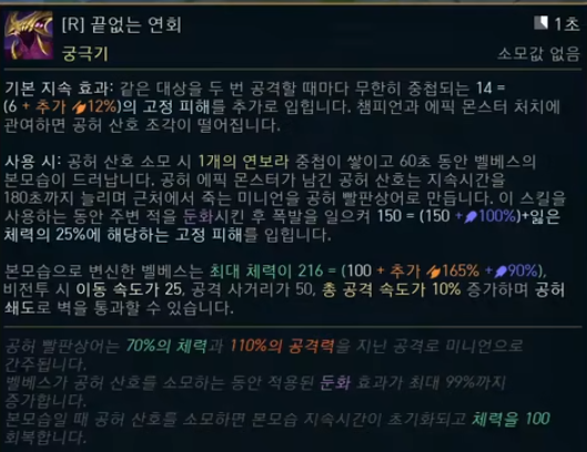 当然,造成这种现象的很大一部分原因,还是因为设计师把英雄技能设计地太过复杂了,远不是用“伤害”、“控制”、“AOE”就能概括的。破败王的夺舍、格温的力场,都需要用大段文字来描述。才上线的卑尔维斯大招,直看得人头晕眼花。