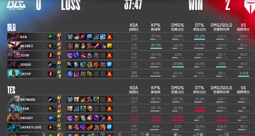 赛后很多网友对于冷少的评价,感觉还不如FoFo,他玩的妖姬在伤害占比上面,不如自家打野盲僧就算了,甚至还不如上单玩一个烂肉塞恩的阿宾,对面的左手打出了34.8%的伤害占比。仔细一看的话这就是典型的中单对位差距,看来冷少这一次复出,真是“首战即退役”啊。毕竟在实力上面看起来,好像真的不如FoFo。