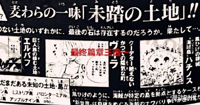 那么,这一期尾田给出的情报会是什么呢?本期情报,尾田给出了海贼王最终章主战场的地址,分别是艾尔巴夫、维拉以及蜂巢岛,这里面有两个地址你肯定都很熟悉,他们便是艾尔巴夫和蜂巢岛,一个是巨人的国度,一个也是黑胡子的总部所在地。