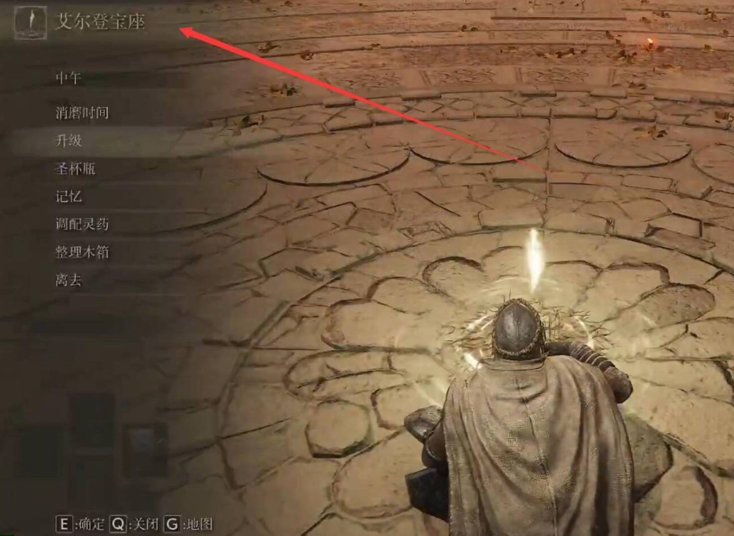 1、首先要传送到达艾尔登宝座的地点。