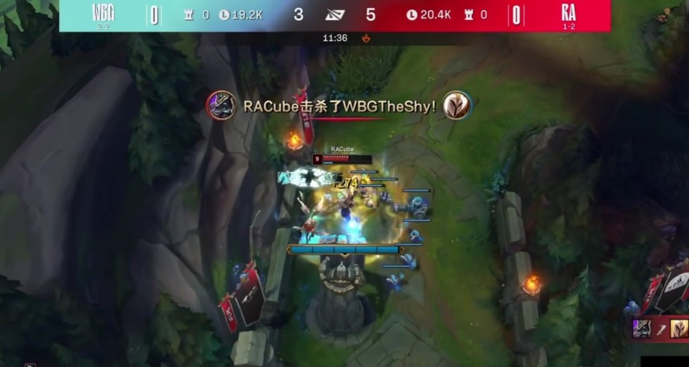本局比赛The Shy自己也出现了很多失误,被Cube的狗头追着揍,直接对位单杀两次。
