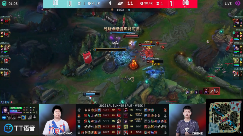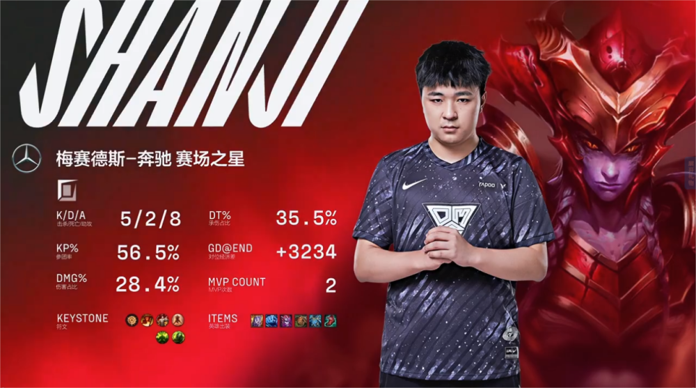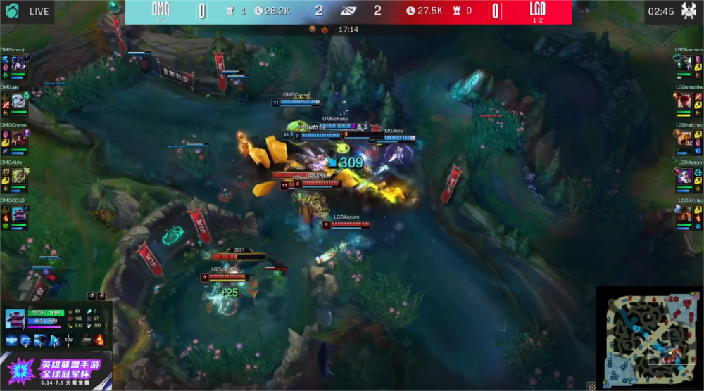 第二局中,Shanji拿出了上单龙女,5分钟时就在上路完成了一波朴实无华的单杀。15分钟,OMG在中路打出了一波1换4,经济差来到了6千多,龙女收获双杀,开始无敌。虽然后面在上路送了一波大的,但是奈何OMG优势太大,并及时稳住了阵脚,最终也是稳扎稳打,在33分钟推平了对面的基地。