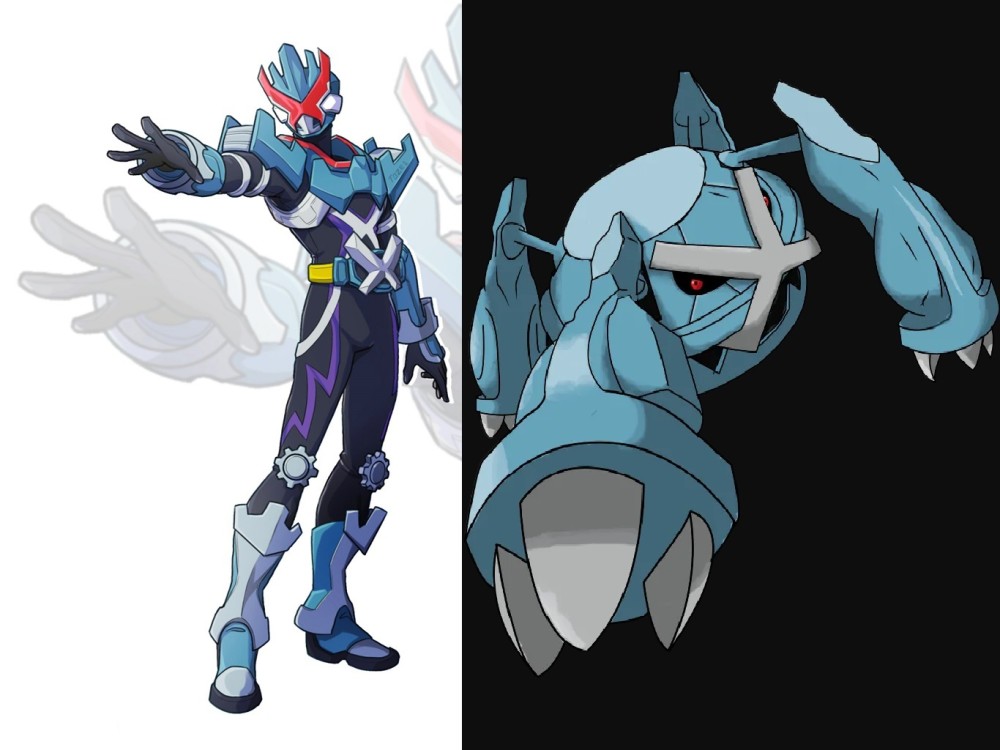 首先是借鉴宝可梦巨金怪设计的假面骑士钢蝎,唯一一个不用精灵球变身的精灵骑士。外形简洁富有岩石质感,是穿着金属盔甲的战士形象,脸部正中是红色的X造型假面,变身器和假面骑士机械的变身很像,将十字架道具与腰带对接完成变身,唯一的问题就是将高智商的宝可梦变身肌肉骑士是不是有点过分。