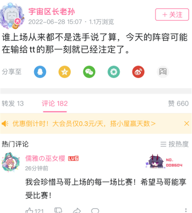 大家都喜欢看乐子,WE的做法让人倍感无趣。因此有不少人指责马哥,认为他故意离开首发位置、保证自己不被嘲。毕竟现在的形势太明朗:V5夏季赛四连胜,其中三场都是二比零,只有RNG打赢一小局。WE战队正好相反,夏季赛开始后遭遇连败,尚未首胜。马哥和dream的约定受到很大影响,看不出谁更强。遭受质疑后马哥突然发文,指出WE选择首发的依据,不会真让乌兹说准了吧?
