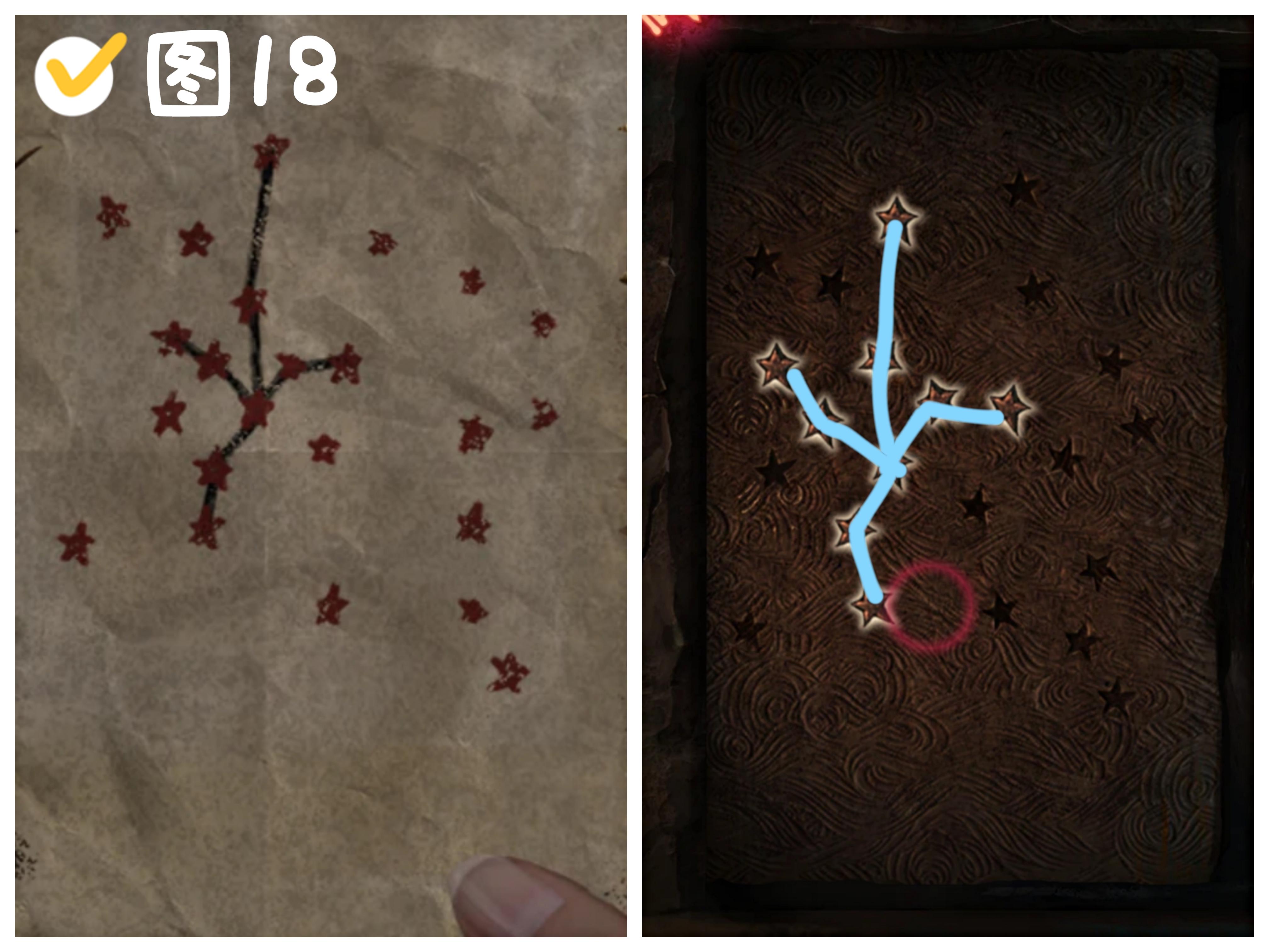 5、按照星星线索的纸条,点亮罗盘后侧石门上的对应星星,开门进入空洞。