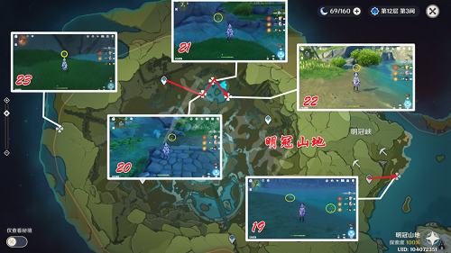 采集点19~22,预估耗时1分整,共计5朵嘟嘟莲。