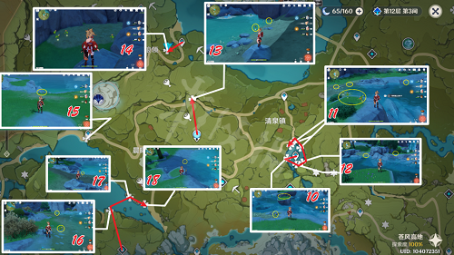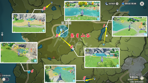 采集点1~6,预估耗时1分半,共计13朵嘟嘟莲。