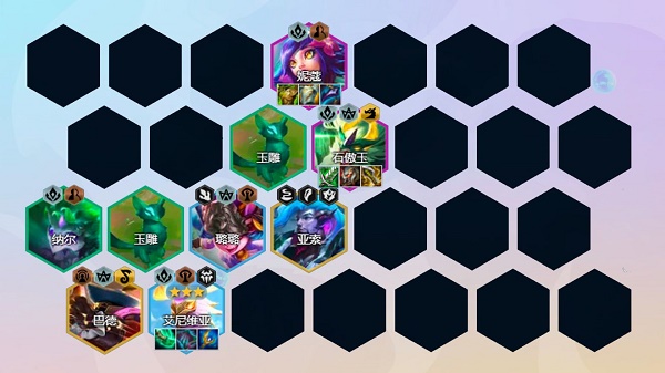 9、珠光莲花阵容两个C位一个艾尼维亚一个石傲玉,物理和法系输出配合珠光莲华伤害爆炸。