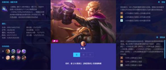 【泰隆】潜行1.5秒并散出一圈刀刃,对命中的敌人们造成65/117/422物理伤害(100%/100%/200%攻击力)。他随后会跃向4格内相距最远的那名敌人并召回刀刃,再次造成第一段伤害并对他的目标造成336/555/1185物理伤害(325%/325%/325%攻击力+125/175/500)。属性生命800/1440/2592暴击率25/25/25