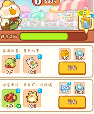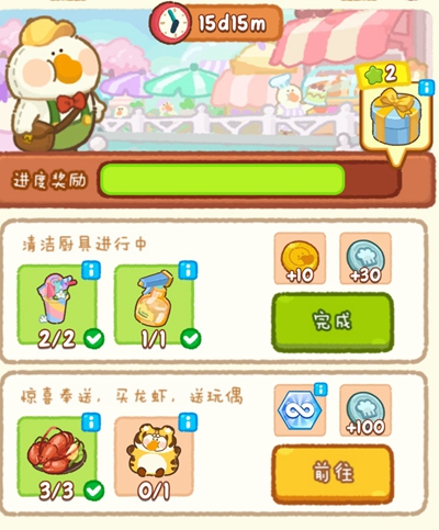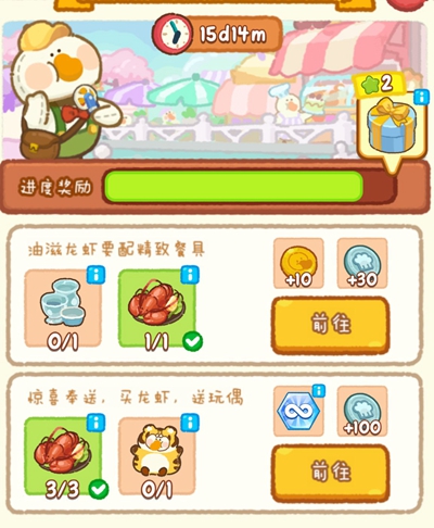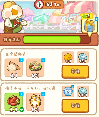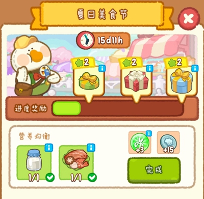 1、夏日美食节活动中玩家需要在规定时间内完成一系列任务。
