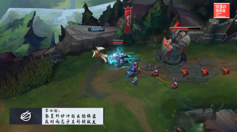 7月10日,LPL夏季赛第五周收官,官方照例举办《饭堂周末夜》,给观众们回顾一下第五周的下饭操作,以及有趣的内容,玩玩梗。不过,与之前饭堂不同的是,上周刚好是国风主题日,为了贴合国风,饭堂有了新的布置,还给每段下饭镜头起了章节标题,而记得被冲的原因正是出在这些标题上。