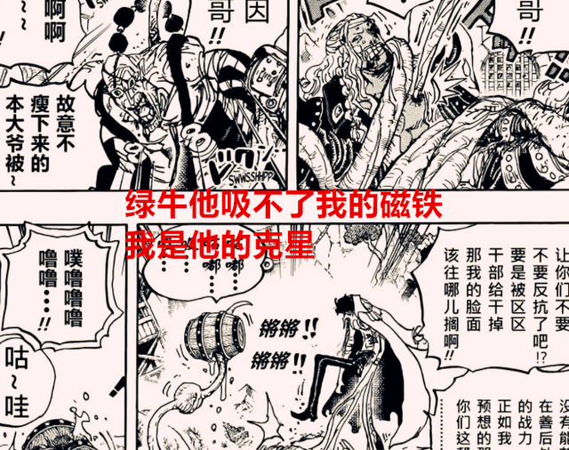 为什么说基德是绿牛最棘手的超新星?刚刚也说了,基德是磁磁果实能力者,相反,绿牛是可以吸收动物或者植物的能量,而基德是磁铁人啊,基德觉醒的话,应该是全身都变成机器人,类似高达这样的形态吧,那绿牛就无可奈何了啊,他是没有办法吸收基德体内的能量,绿牛你吸条铁啊。绿牛要是没有能量的补充,他打不动基德,而基德可以依靠果实的能力压制绿牛,这样就显示出基德的硬实力了。