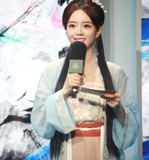 这次的头饰还是一样少,衣服是淡蓝色的,拍好了看起来能够仙气飘飘。可惜余霜有点驾驭不了这身衣服,在台上看她的皮肤没这么白,法令纹也有点重,比较显老。
